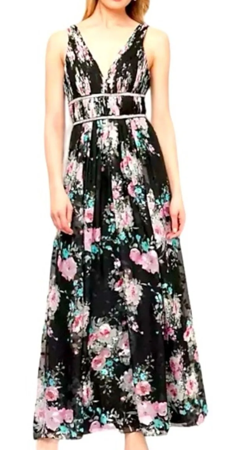 Brand new with tags Alex Evenings Black Floral Rhinestone Maxi Dress, Size M — sophisticated formal... Show more