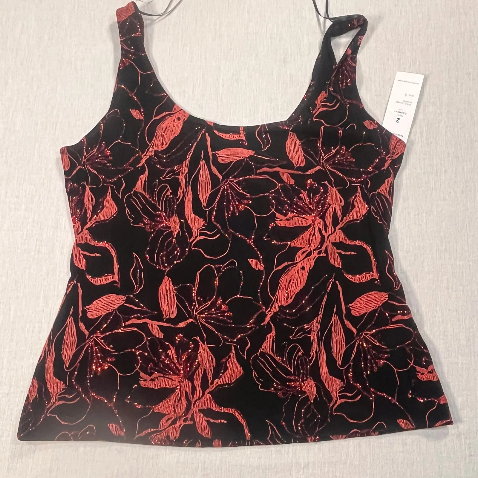Alex Evenings Red Floral Mush Glitter Tank Top Small Party Elegant Dressy Women Black - $19 New With Tags - From Helen