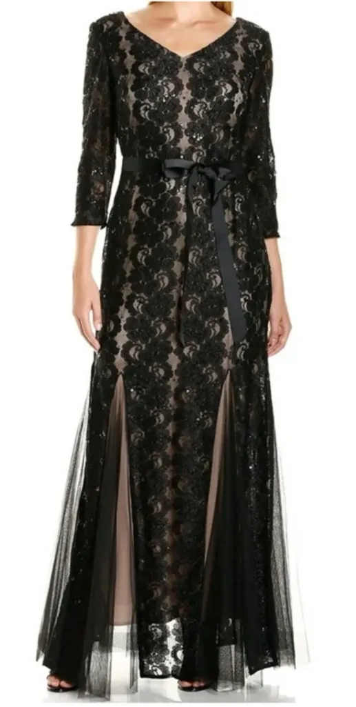 Alex Evenings Sequined Lace Mermaid Gown Black Nude‎ 10 - $125 - From Nordic