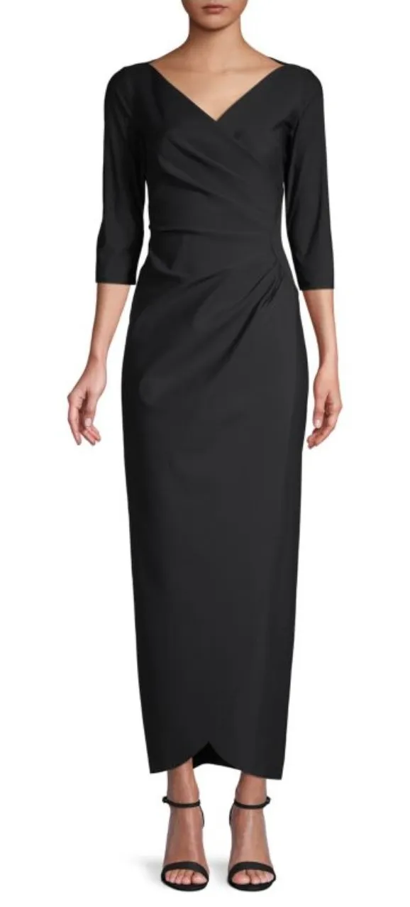 Alex Evenings V-Neck Evening Gown - New w/ Tags Size - 8 Color - Black -Feminine evening gown with ruched detailing on side waist -Three-quarter sleeves -Concealed back zip with hook closure -3/4 Sleeve V-Neckline: Provides stylish coverage while framing the neckline elegantly. -Offers comfort, support, and a smooth fit throughout the day or evening. -Side Ruching: Creates a slimming, waist-defining effect for a flattering silhouette. -Effortless Style: Combines neat detailing with a polished, easy-to-wear look. -Dry clean Approx. Measurement - laying flat, not stretched out: AP to AP - 16" Waist - 14" Shoulder to Bottom Hem - 58.5" Fabric: 78% Nylon, 22% Spandex Scuba like material Retail: $280 *Dress comes as shown in the photos - Please review all pictures in the listing before purchase. *Perfect Condition! New w/ Tags Ships Fast