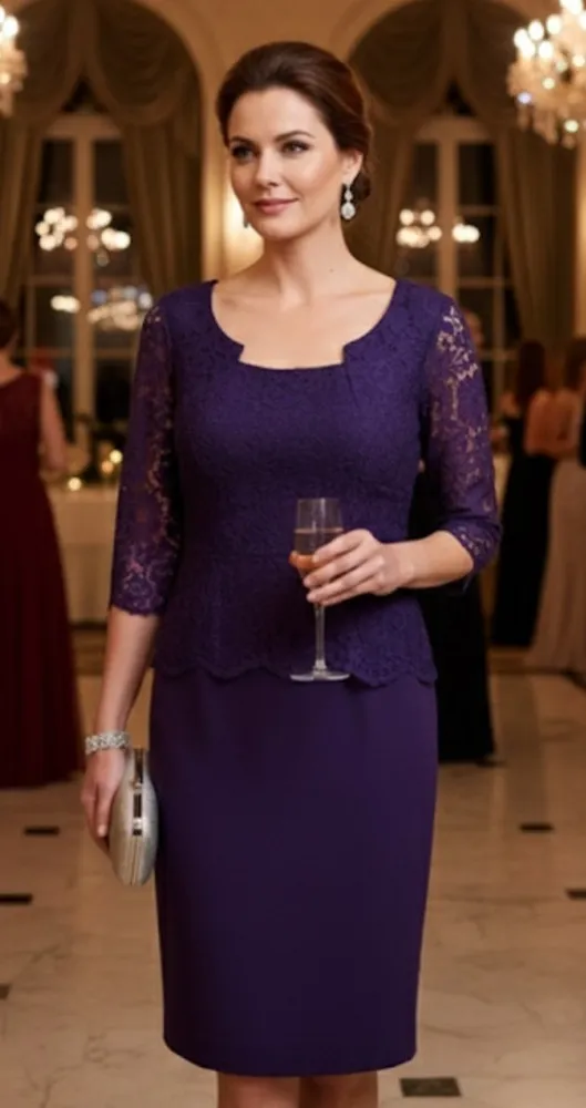 Alex Marie Formal Mother Of The Bride Sheath Dress Size 4 No flaws Excellent condition/ new 17 bust 38 length Elegant Alex Marie purple lace sheath dress featuring a scalloped lace overlay bodice with 3/4 sleeves, a tailored pencil skirt, and a flattering square neckline. Perfect for cocktail parties, evening events, weddings, or formal occasions. Timeless style with a touch of sophistication. • Brand: Alex Marie • Color: Purple (Deep Amethyst) • Style: Lace Sheath Dress • Neckline: Square • Sleeve Length: 3/4 • Occasion: Cocktail, Evening, Wedding, Formal • Material: [add fabric if on tag] • Closure: Back Zip
