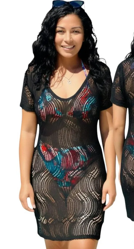Alexa & Stella black crochet mesh dress in size L — a stretchy, lightweight, semi-sheer open-knit piece perfect as a swim cover-up. Features a soft drape, short sleeves, and a curve-flattering silhouette that layers easily over any bikini or one-piece. Breathable polyester-spandex blend gives comfort and movement for pool days, beach trips, or resort vacations. Condition NWOT , never worn , no flaws Measurements: Chest 19.5” pit to pit, Length 34”. Ideal for summer, tropical getaways, cruises, and festival styling. Wear it over bold swimwear for a chic, effortless look. SEO Boost: swim cover up, crochet beach dress, mesh coverup, sheer summer dress, resort wear, bikini cover-up, vacation outfit, festival mesh dress, poolside chic, lightweight beachwear #0396