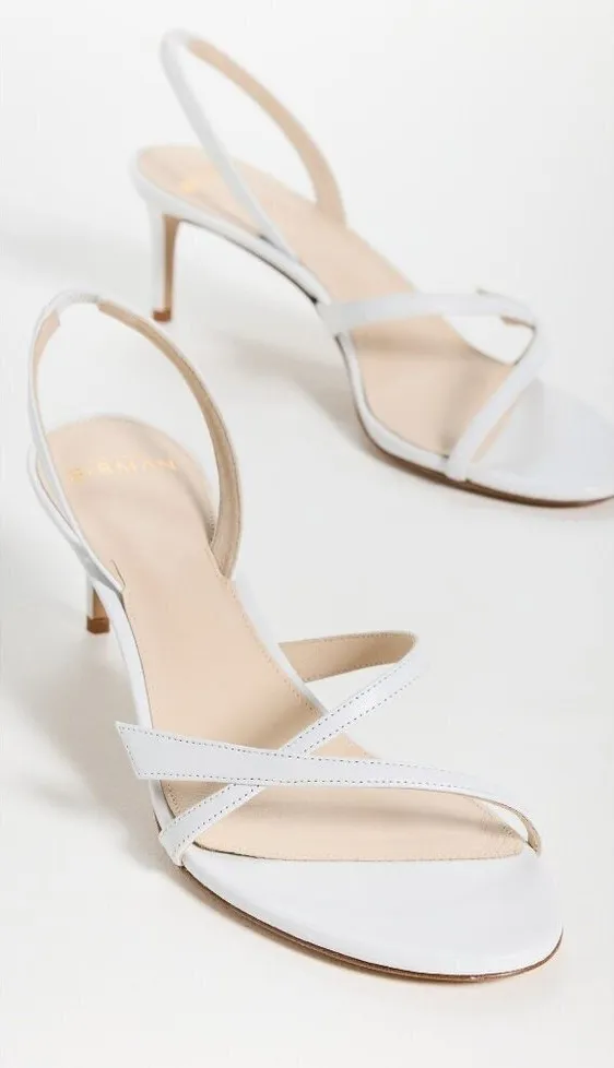 Introducing our new and soon-to-be iconic Tita family, a reimagined take on the signature Clarita style. This minimalist and chic construction features sleek bold lines and feminine curves, set on a 85mm stiletto heel. Beautifully handcrafted in classic Nappa leather, the Tita is a distinctive silhouette that will make a lasting impression. Sling back styling Leather footbed and lining Strappy design Almond toe Approx 57mm/ 2.25 inch heel Leather upper with leather sole Made in Italy Revolve Style No. AEBR-WZ196 Manufacturer Style No. B0603900010001 Color: White MSRP: $650.00 Features: • Currently on Revolve but sold out in this size Size: Womens 38 Condition: Pre-Owned excellent, worn once, with box Tags: date night, party, flirty, sexy, formal, event, date, evening, pumps, neutral, cocktail, square, high heels, slides, mules, shoes, sandals, wrap, tie, strappy, metallic, bridal, bride, wedding, retro, hippie, 70s, 60s, nudists, barely there