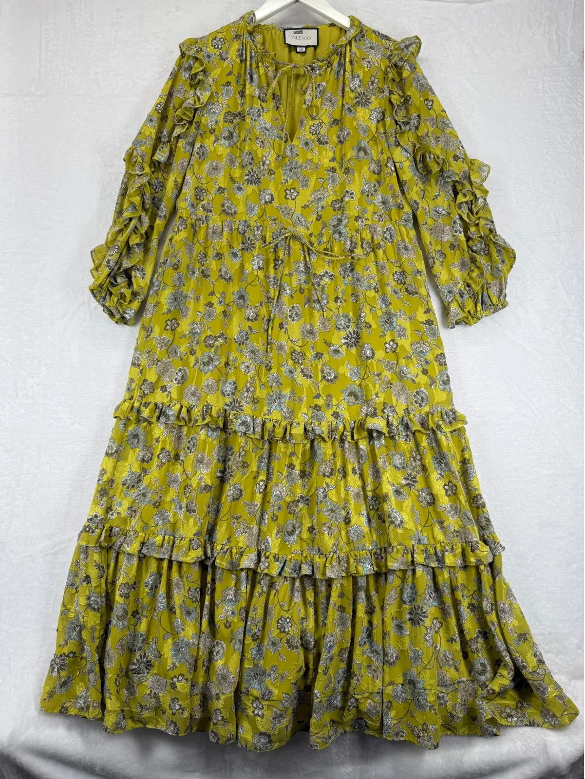 Style: Maxi, Sundress Dress Length: Long Department: Women Sleeve Length: Long Sleeve Pattern: Floral Occasion: Casual, Party/Cocktail Material: Polyester, Silk Blend Fabric Type: Woven Theme: Bohemian Neckline: V-Neck Season: Spring, Summer, Fall Sleeve Type: Cold Shoulder Sleeve Closure: Tie Accents: Ruffle, Layered Keywords: floral, maxi, ruffle, tiered, yellow, blue, gray, bohemian, feminine, long sleeve, flowy, summer, vacation, resortwear, designer, fairy, cottage core, prairie, milkmaid Thank you for viewing my listing! Please see the photos for a detailed look at its CONDITION and MEASUREMENTS. Feel free to reach out with any questions.