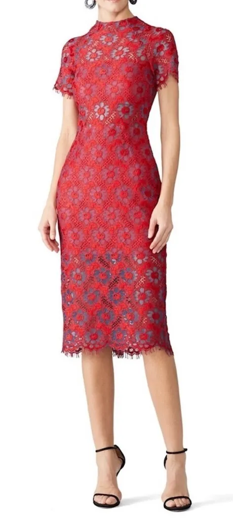 ALEXIS Floral Lace Short Sleeve High Neck Sheer Cutout Bodycon Sheath‎ Dress L Red Size L - $225 - From Brittnie