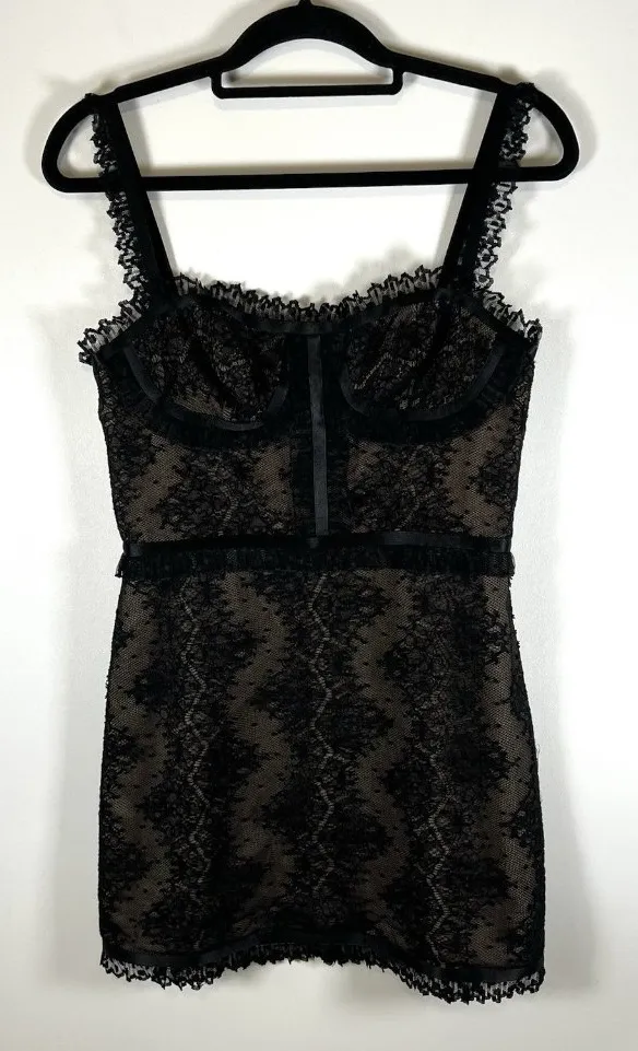 missing the size tag-view measurements in the description The Alexis Tesi Black Lace mini Cocktail... Show more
