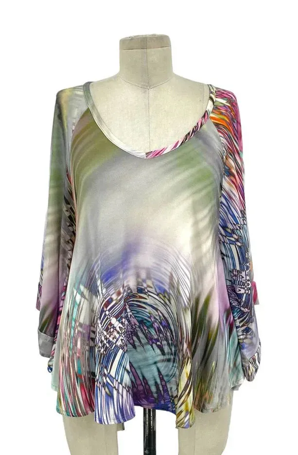 Alexis Poncho Cape Top in Abstract Multicolor Print Scoop neckline Cape / poncho styling with bu... Show more