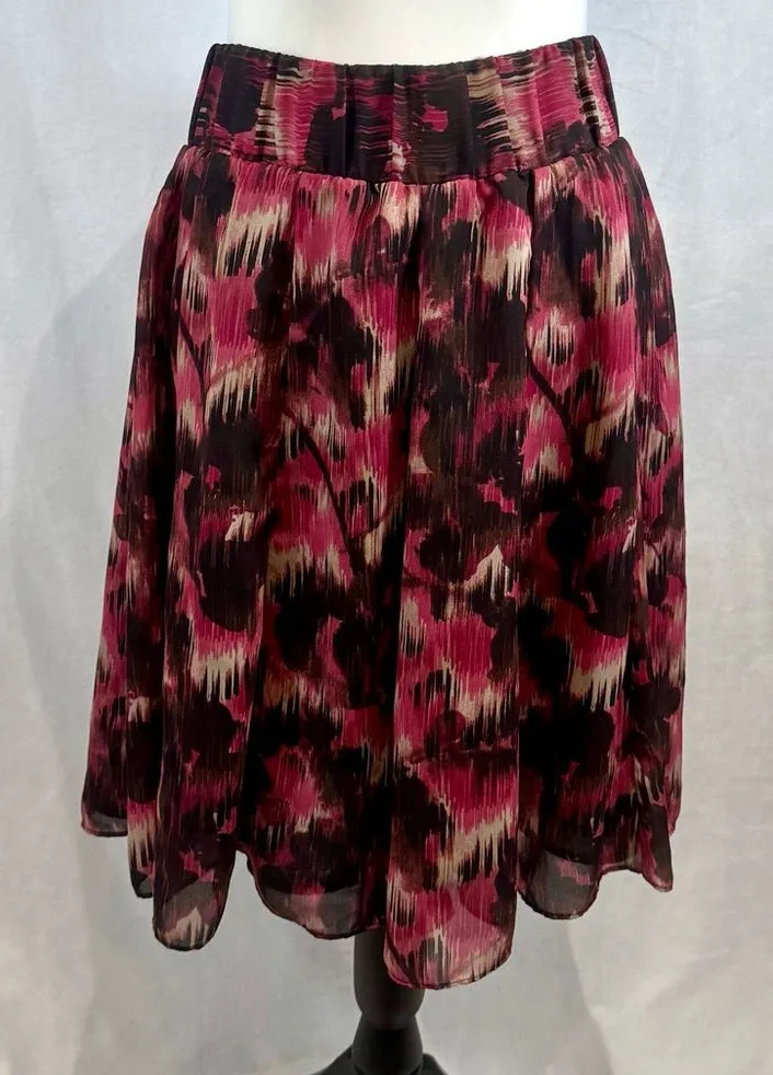 Alfani pink brown tan and black abstract print flowy midi skirt size medium - $15 - From Upstyle
