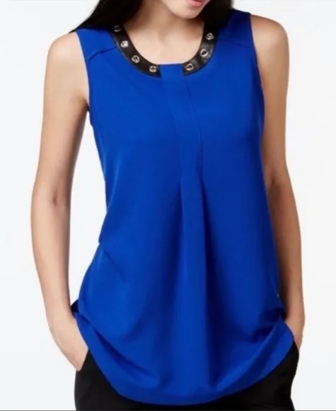 Alfani royal blue top with faux leather and grommet detail Size 8P - $18 - From Upstyle