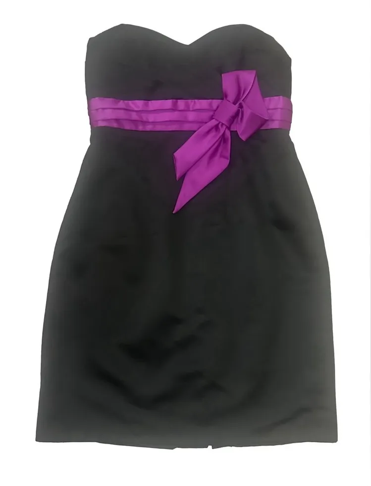 Alfred Angelo Satin Strapless Sweetheart Formal Dress Size 14. Black with violet bow. Lined, rear zi... Show more