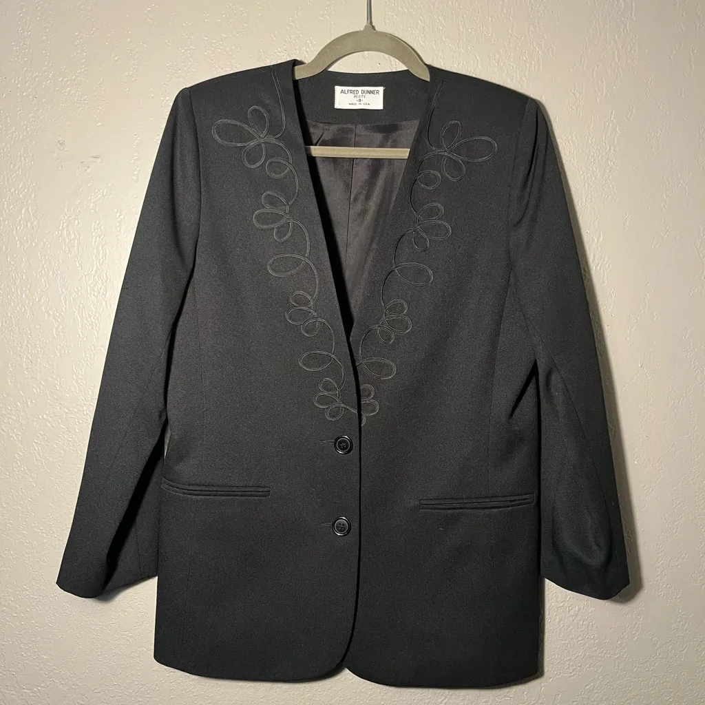 This Alfred Dunner blazer in a sleek black color offers a timeless and tailored look, perfect for fo... Show more
