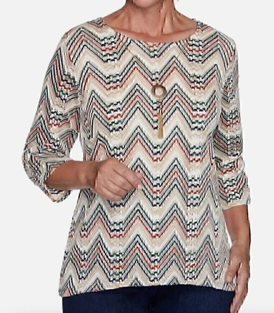 -brand - Alfred Dunner -style name/# - Hunter Mountain Zigzag Necklace Top -size - large -shir... Show more