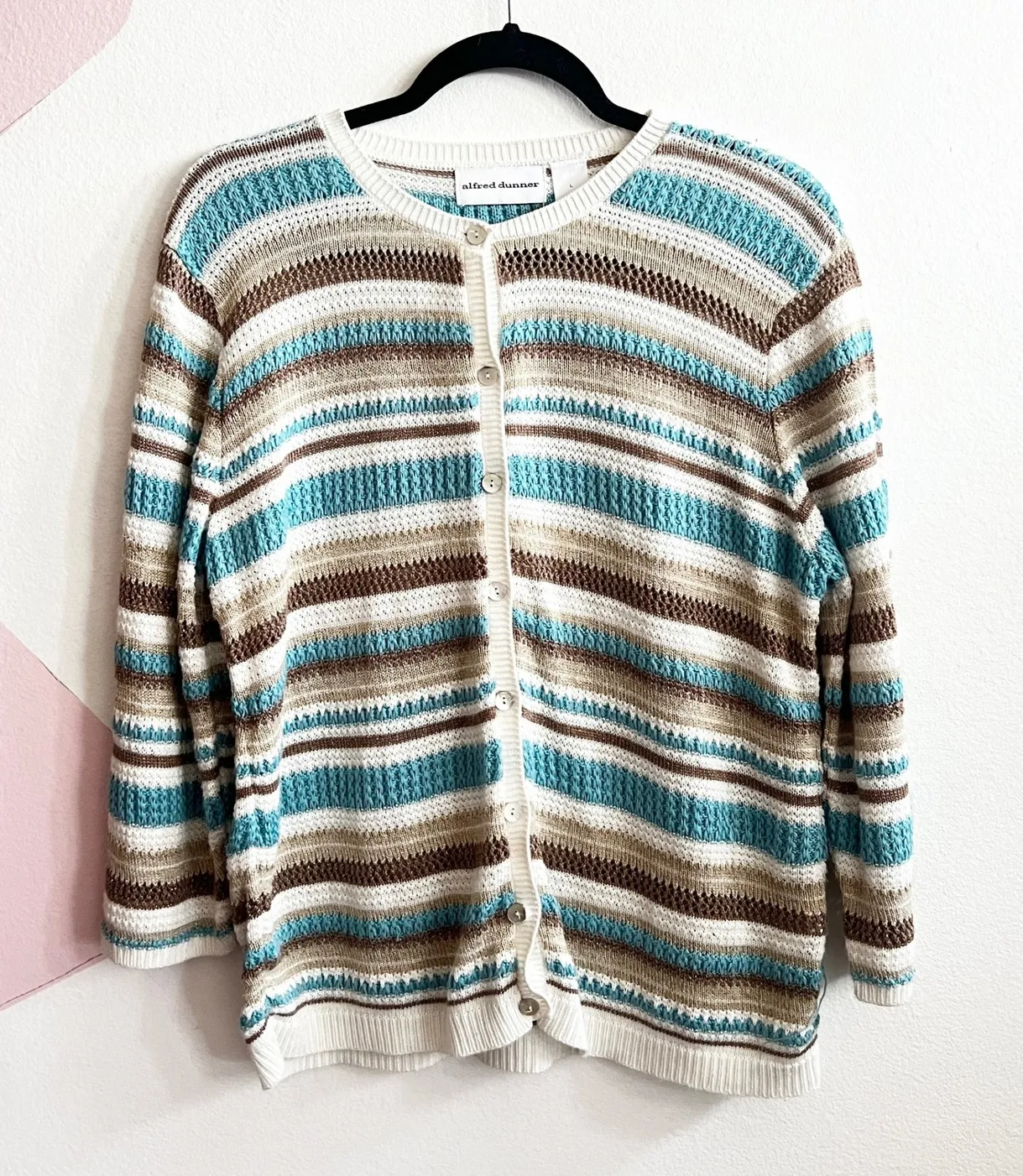 Alfred Dunner Striped Cardigan Vintage Fairycore Cottagecore Coquette Large White - $30 - From Kenia