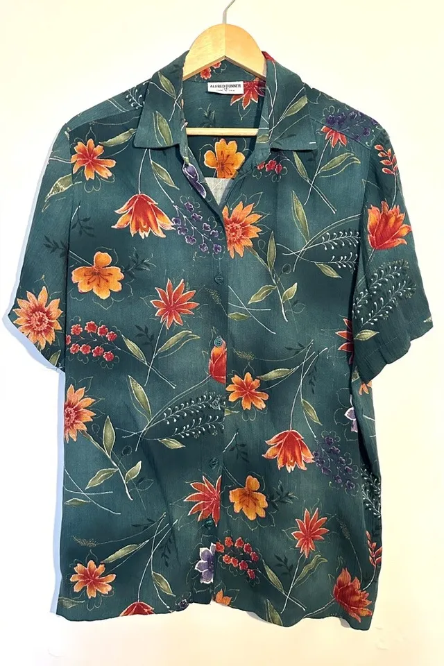 This Alfred Dunner shirt features a vibrant floral design with bold orange blooms on a rich green background. Crafted for comfort and style, it's perfect for casual outings or relaxed gatherings. The lightweight fabric ensures a breezy feel, making it an ideal choice for warm weather. CONDITION: Pre-owned Good condition! ❗️Please refer to the picture and compare measurements to ensure proper fit. Measurements are approximate: Pit to pit: 25” Materials: 100% Polyester 🔘The digital images displayed have the most accurate color possible. However, due to differences in computer monitor and phone screens, there may be a small variation in color between the actual product and your screen. 🌟Feel free to ask me any questions 🙂! 🌟If I miss your comment, please comment again!