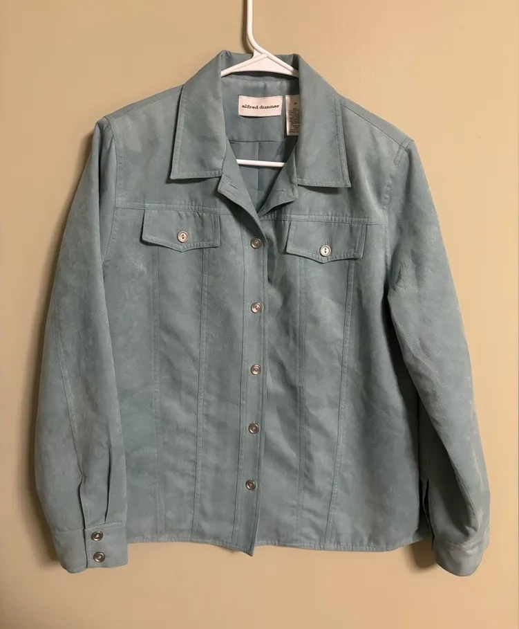 Alfred Dunner Womens Blue Soft Faux Suede Blazer Shirt Jacket Shacket Size 10 - $19 - From Ashlee