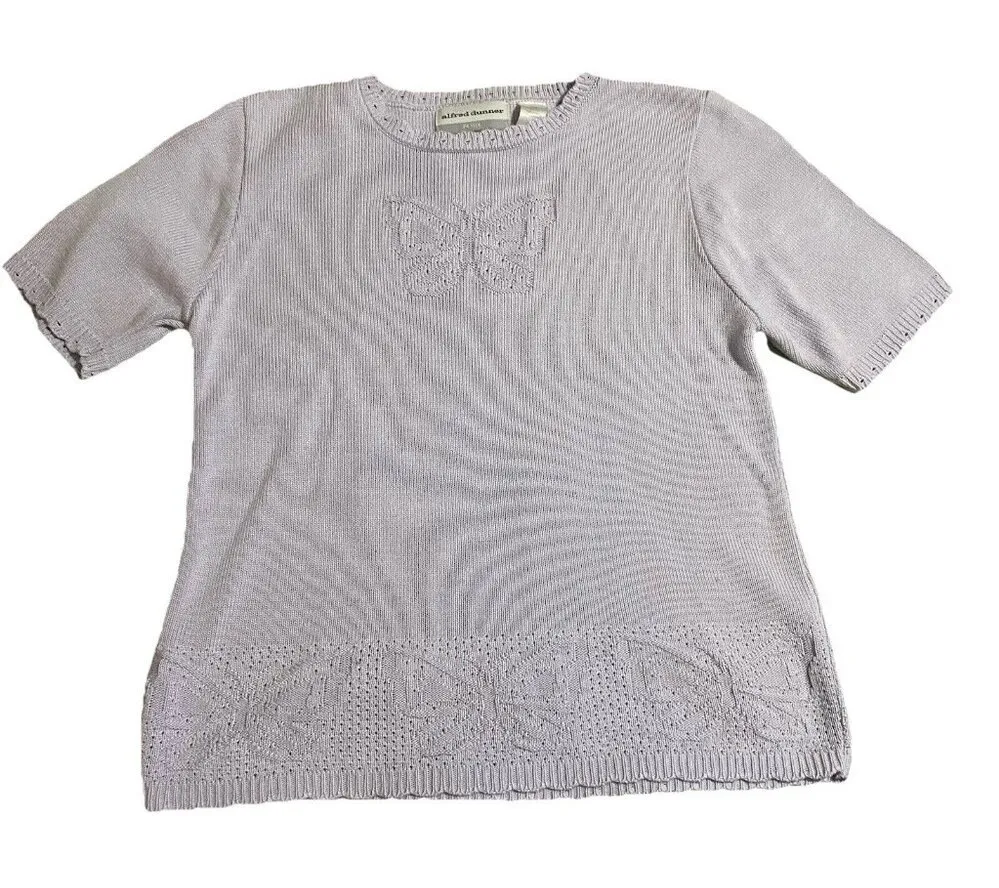 This Alfred Dunner women's sweater in petite size PM features a solid purple color with a chunky kni... Show more