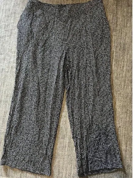 Effortless style awaits with these woven print pants, a versatile addition to your wardrobe. The cropped, wide-leg silhouette offers a relaxed and modern look, perfect for everyday wear. These pants feature a comfortable elastic waistband, ensuring a flexible and flattering fit. The unique woven pattern adds a touch of visual interest, making them a standout piece. Ideal for casual outings, lounging at home, or even a relaxed office setting, these pants provide both comfort and style. Keywords: woven pants, cropped pants, wide leg pants, casual trousers, lounge pants, black and white pants, comfortable pants, elastic waist pants, relaxed fit pants, easy wear pants, modern pants, stylish pants, everyday pants, versatile pants