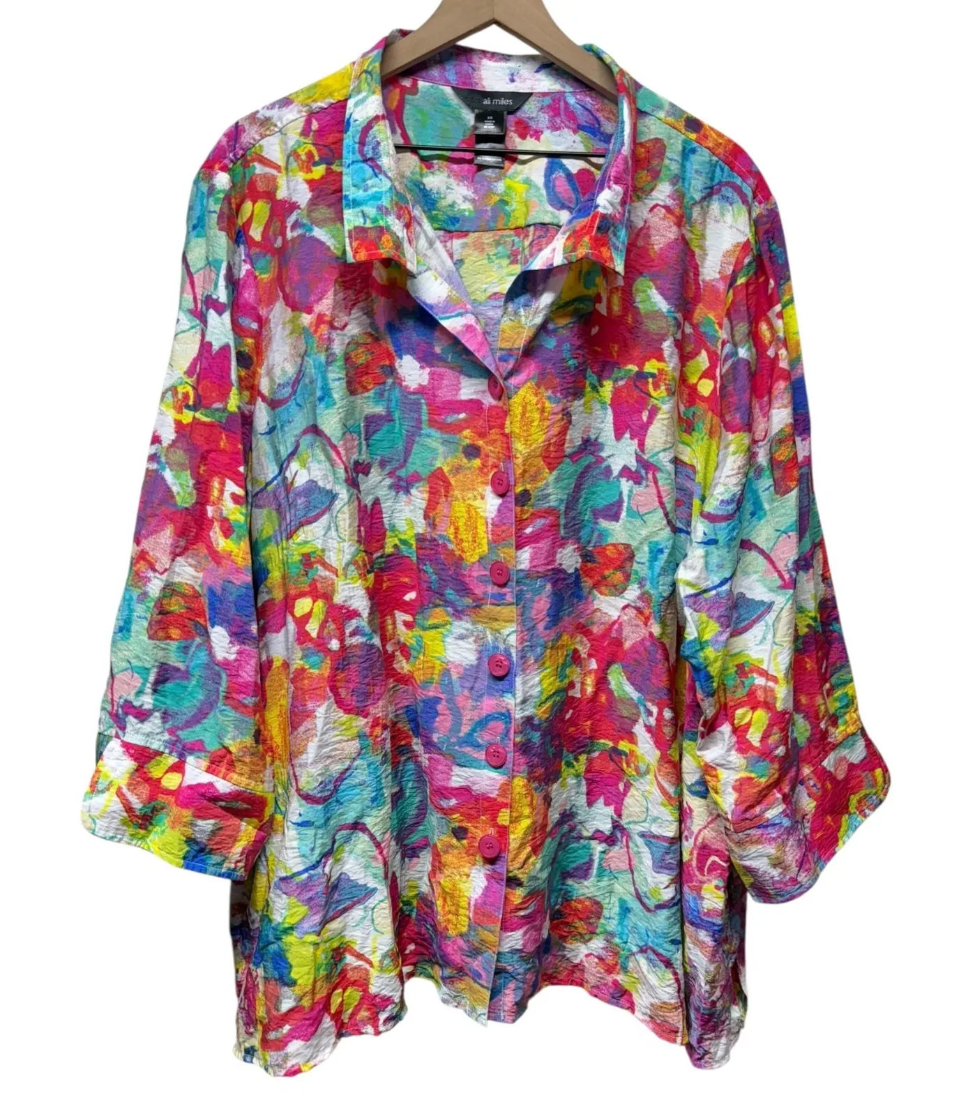 Ali Miles Button Up Tunic Top 3X Artsy Colorful 3/4 Sleeve Wire Collar Lagenlook Size undefined - $45 New With Tags - From McKinley