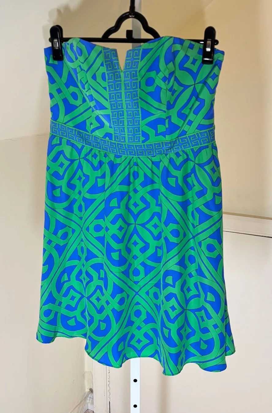 Alice & Trixie EUC Women's Green Blue Silk Strapless Geo Print Dress Size M Size M - $30 - From Amy