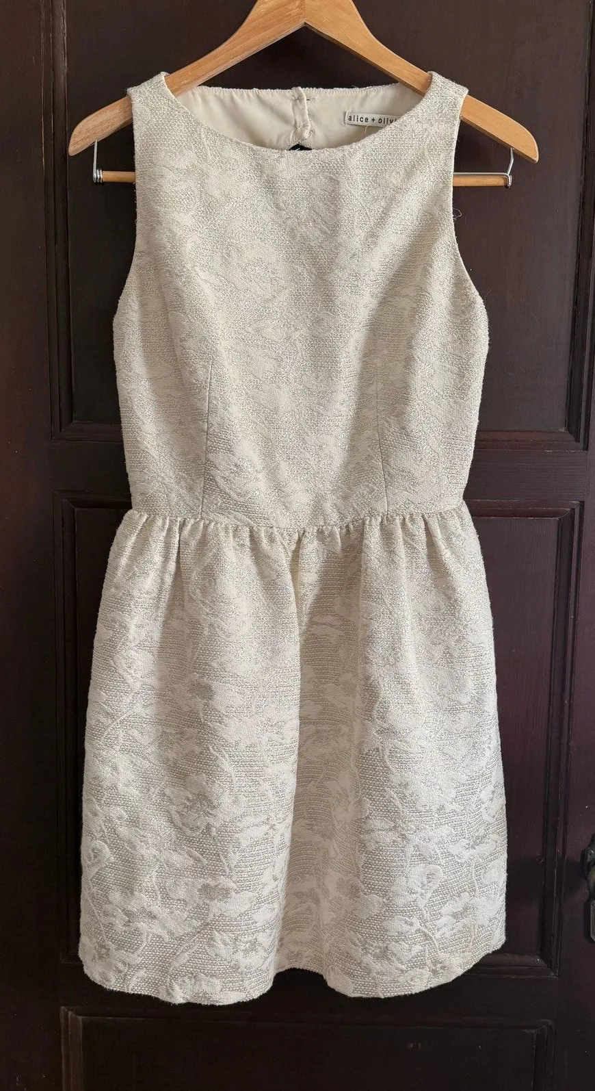 ALICE & OLIVIA | Lilyanne Cream Jacquard Open Back Little White Dress Luxe Cream and Silver Jacqua... Show more