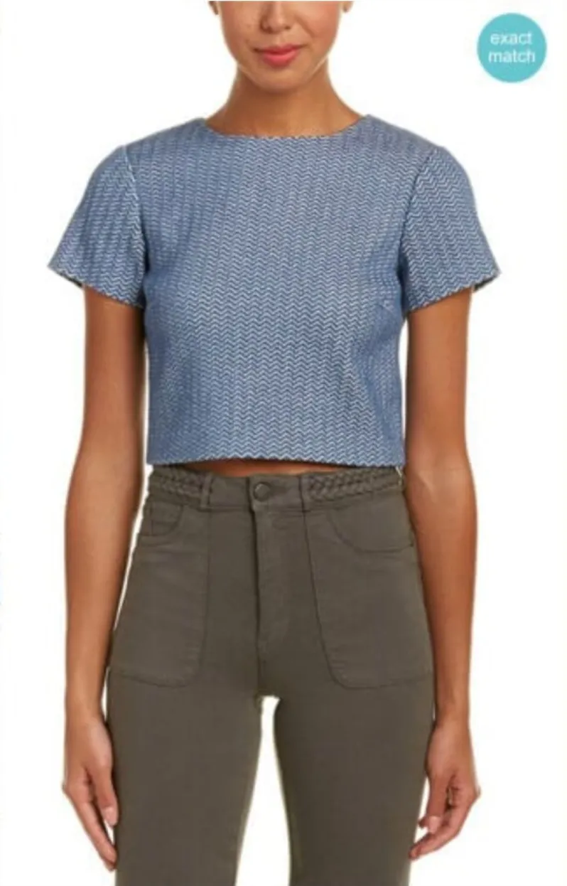 Alice + Olive Sarina Chevron Print Jacquard Crop Top Blue As Seen On TV Size XS Gently used conditi... Show more