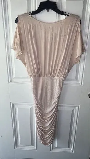 Alice + Olivia Ruched Dress Size 4 Women’s In Blush Pink MIDI Length 42” Bust flat lay 15” Has some... Show more