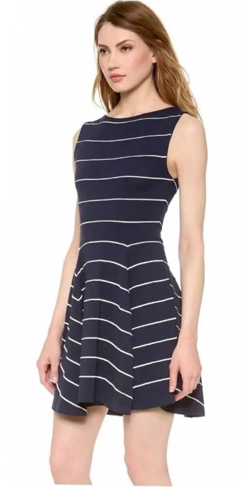 This striped alice + olivia dress makes a flirty impression with a swingy circle skirt. Exposed back... Show more