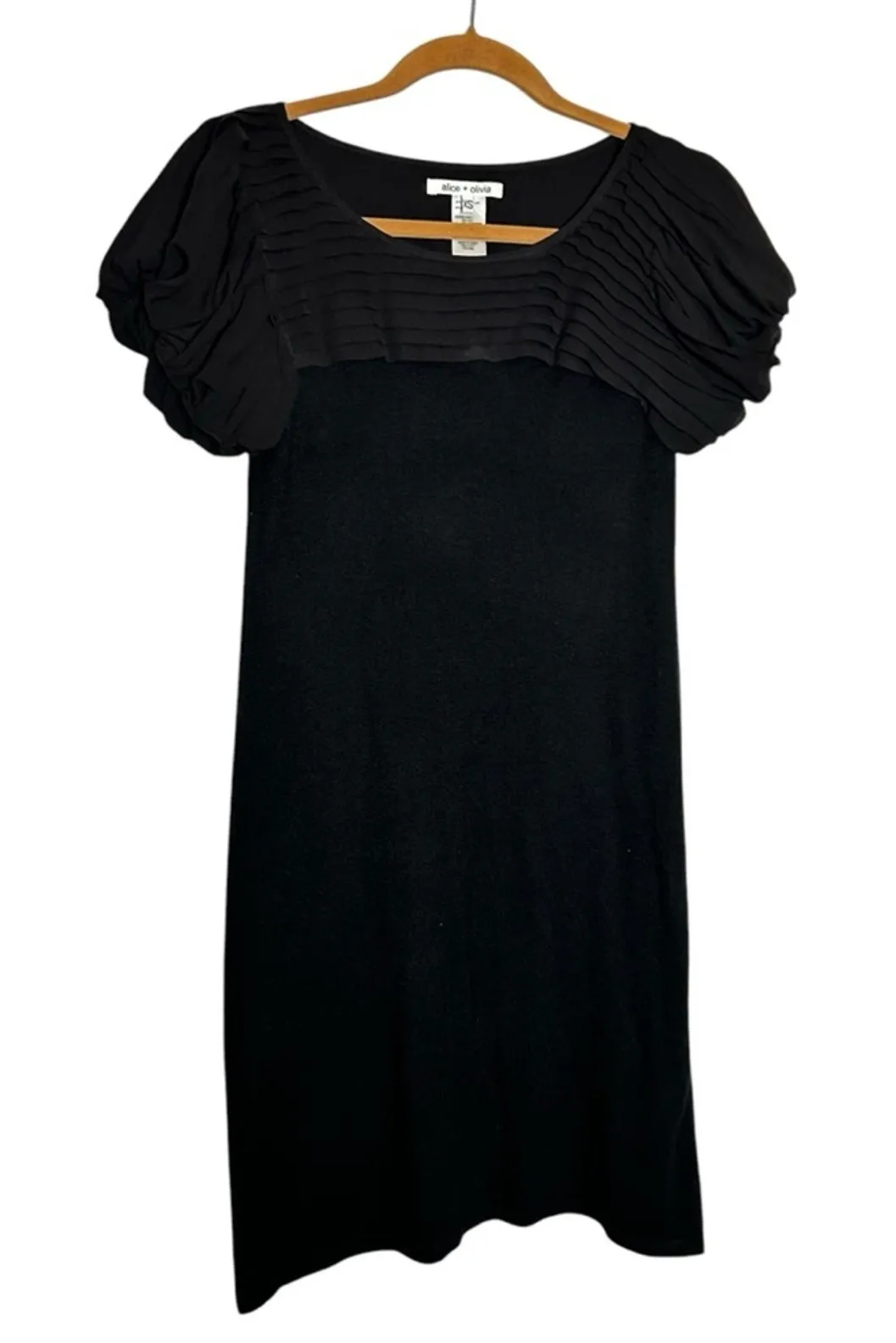 Alice + Olivia Black Silk Cashmere Short Puff Sleeve Mini Dress Size XS Measurements (approximate... Show more