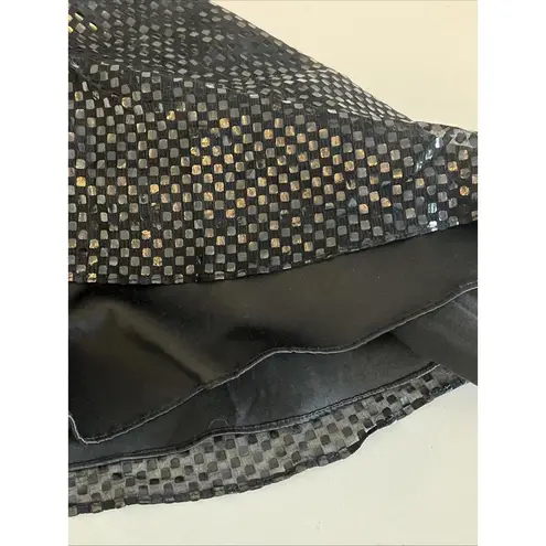 Size XS No content tag - top feels like a knit jersey Babydoll style fit and flare dress Pockets Jersey upper with flared skirt. Not sequins, shiny polka dot print Satin skirt liner Good used condition, no stains or flaws Approx measurements lying flat: 15" pit to pit 31.5" length 1993