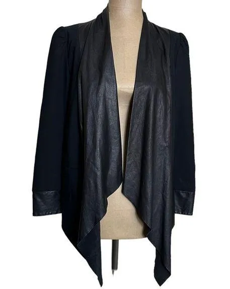 Alice + Olivia size XS black leather and wool cropped jacket -Open front jacket, Leather trim at fr... Show more