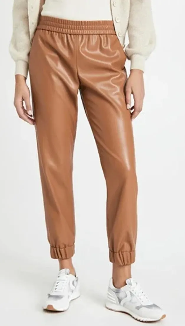 Alice + Olivia Brown Tan High Rise Faux Leather Vegan Tapered Jogger Pants Sz S Size: S/P Condition... Show more