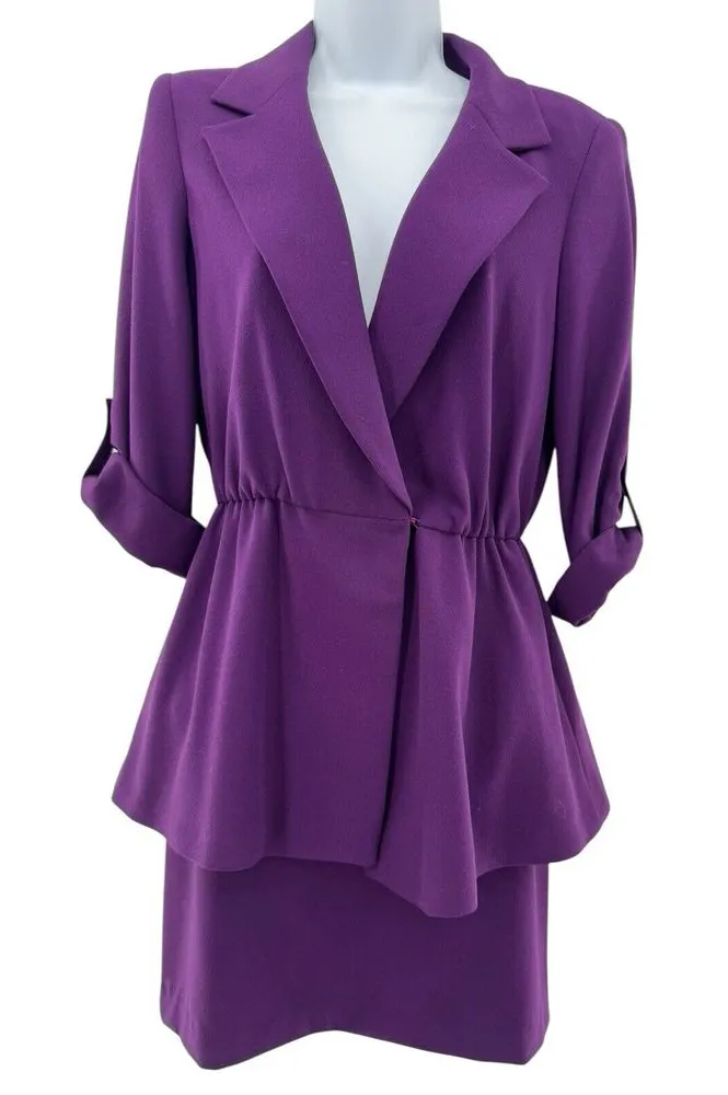 Alice + Olivia Purple Ena Hook Eye Closure Blazer Skirt Suit Outfit Set Size 6 - the item is in exc... Show more