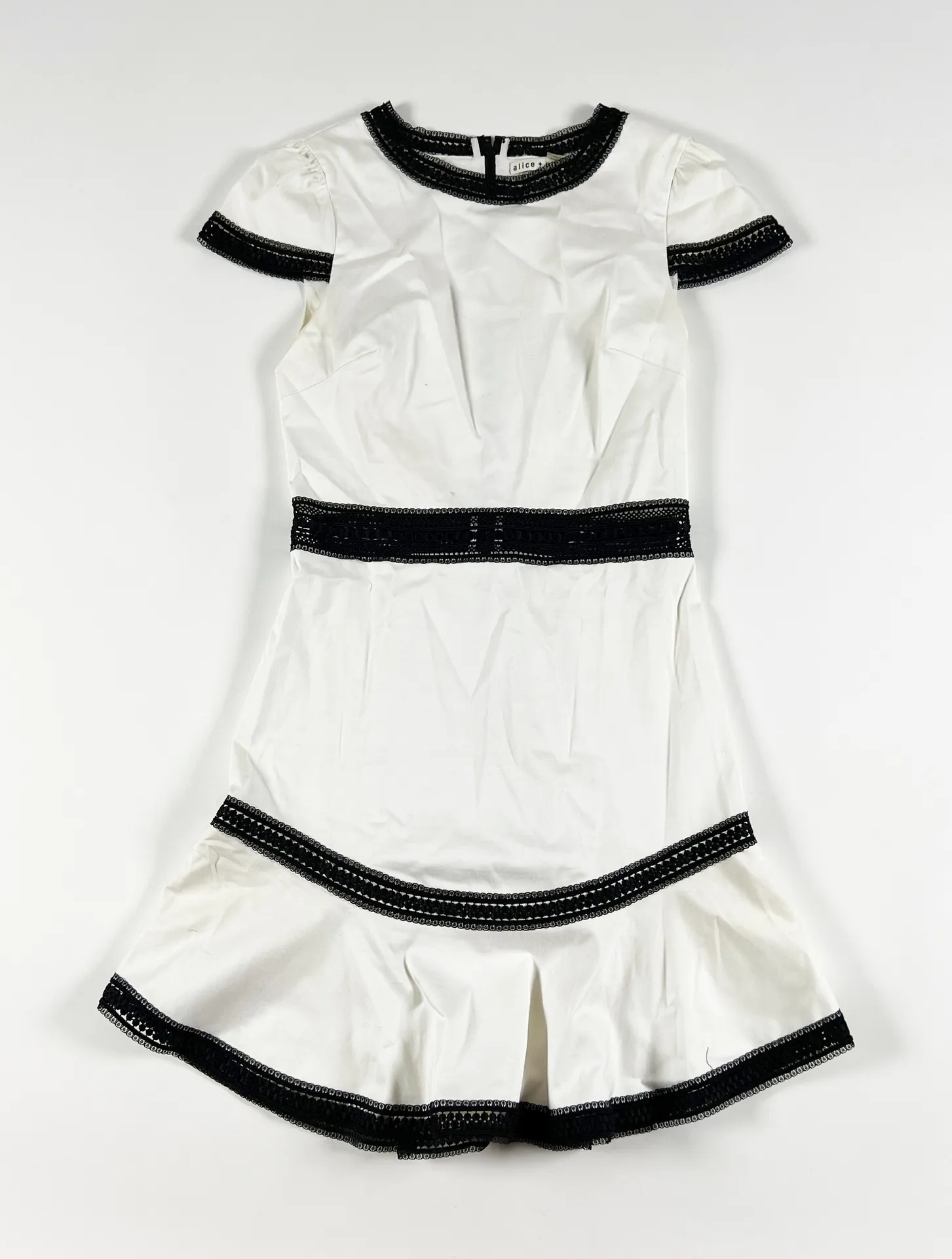 Alice + Olivia Rapunzel Rapunzel Cotton Plan Stretch Lace Applique Tiered Dress Flare dress with co... Show more