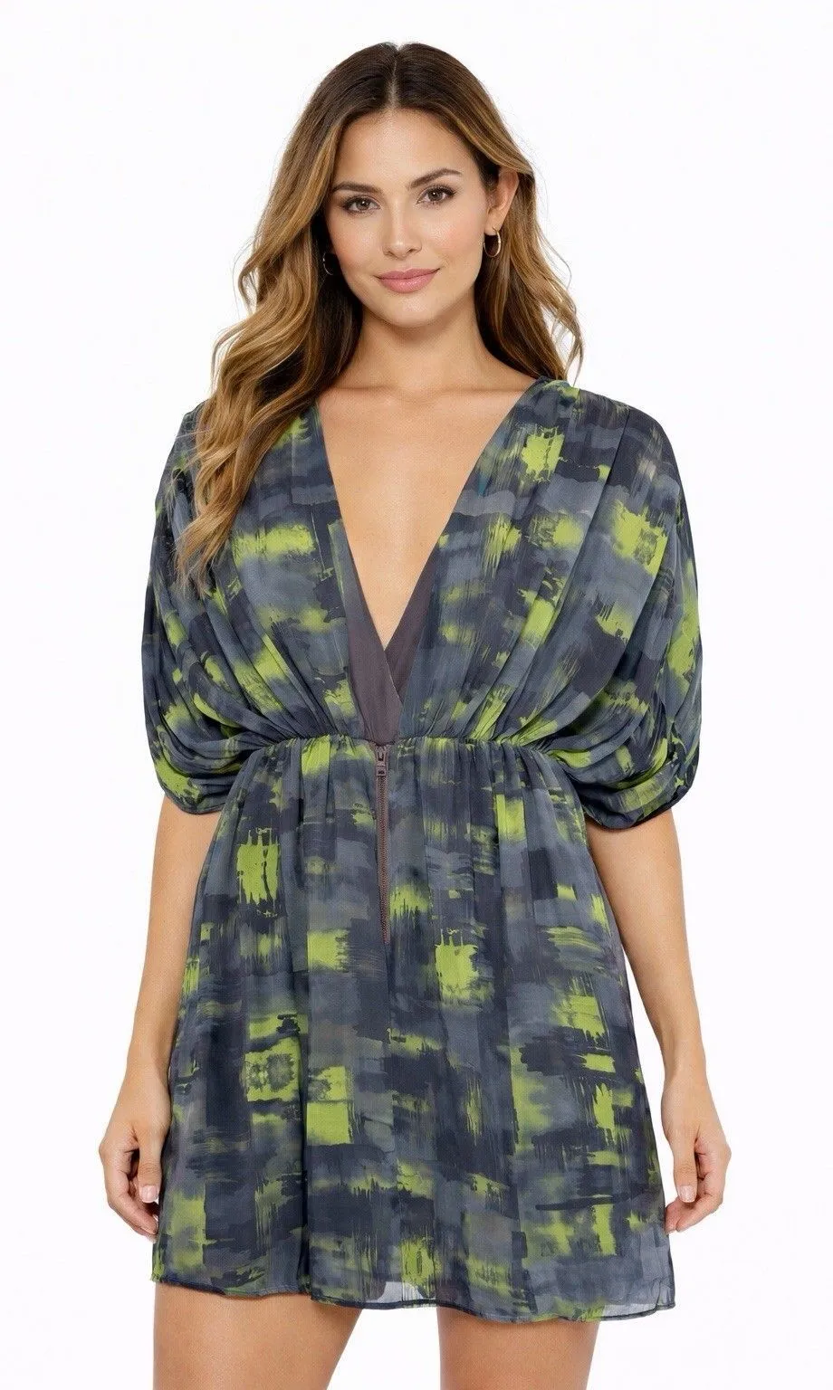 The Alice + Olivia Silk Dress in size L features a geometric pattern in green and gray, making it a... Show more