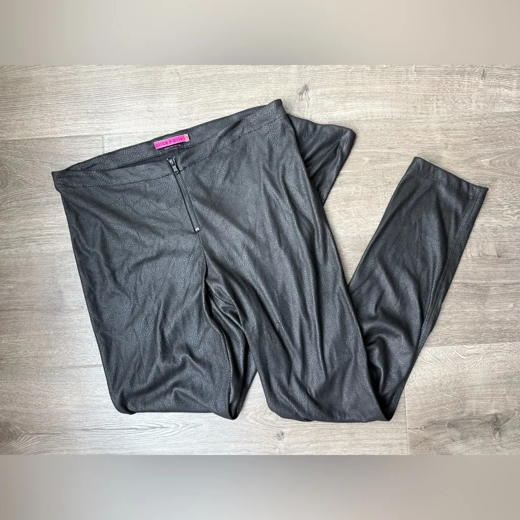alice + olivia Women's Faux Leather Black Leggings / Skinny Pants! Have a texture/print to them - sn... Show more