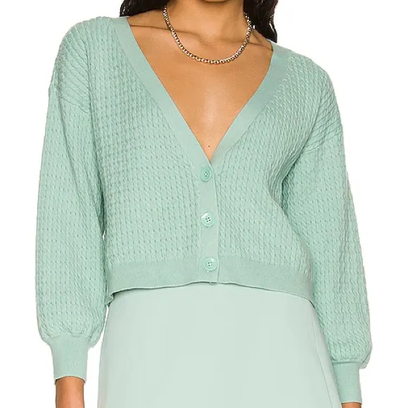 Alice + Olivia Zelina Deep V Cardigan Color: “Breeze” comparable to a light teal - in perfect condi... Show more