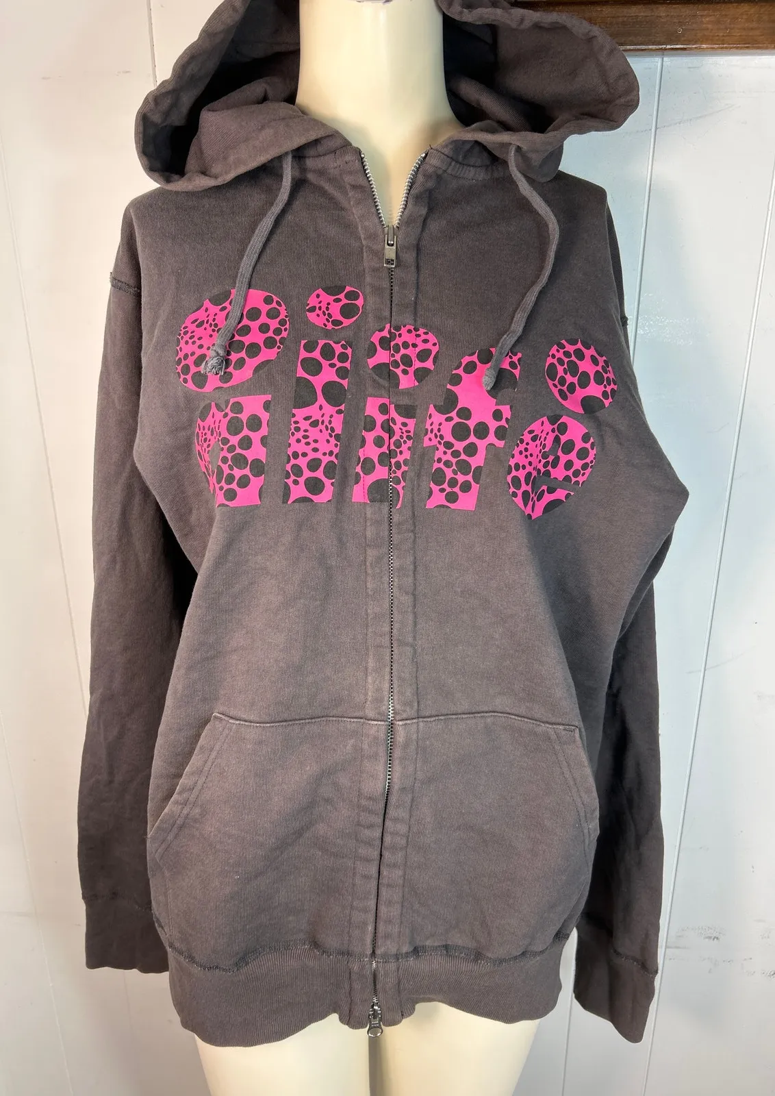 alife dark gray full Zip hoodie with hot pink logo with polka dots. Size M Size M - $45 - From Cynthia