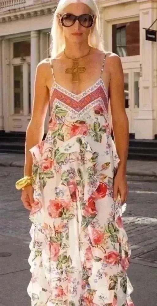 Step into effortless luxury with this Alix of Bohemia Filipa Rosa Dress, a highly coveted style from the designer known for her handcrafted bohemian heirlooms. Retailing for $1,180, this women’s size Medium dress is a rare find—perfect for collectors and lovers of boho chic resortwear. Made from 100% breathable lightweight cotton, this piece features a vibrant wildflower print, ruffled neckline and hem, and the romantic, artisanal craftsmanship Alix of Bohemia is celebrated for. Each dress is handmade in small batches, making it as unique as the woman who wears it. ✨ Features & Details • Brand: Alix of Bohemia • Style: Filipa Rosa Wildflower Ruffle Dress • Size: Medium (M) • Material: 100% Cotton – breathable, airy, perfect for warm weather • Condition: Preloved, excellent condition – gently worn, no flaws • Design: Pull-on style, vibrant floral print, bohemian ruffles This piece moves seamlessly from luxury vacations to European getaways, summer weddings, beachside cocktails, or brunch in the city. Styled with sandals or heels, it captures the essence of resort-ready elegance, sustainable luxury, and timeless bohemian chic. Ships quickly and securely. Don’t miss the chance to own a collector-level Alix of Bohemia dress at a fraction of retail. #AlixOfBohemia #FilipaRosa #LuxuryBoho #ResortDress #DesignerCottonDress alix of bohemia filipa, boho ruffle dress, cottagecore maxi dress, floral cotton sundress, luxury resort dress, vacation bohemian dress