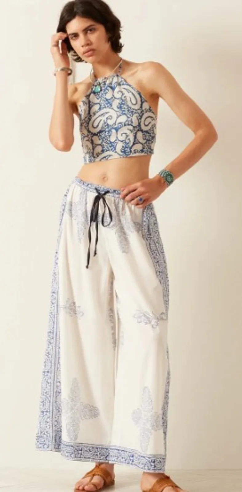 RETAILS $330 NEW WITH TAGS! Cut from block-printed cotton, our blue paisley print halter ties at the... Show more