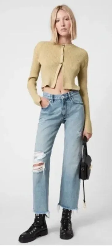 All Saints Tank and Cardigan Lexi Ribbed in Gold Crewneck Long sleeves Partial front button closures... Show more