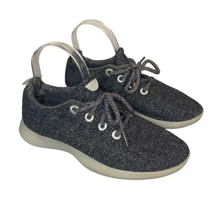 Elevate your athletic style with these Allbirds Natural gray sole runners sneakers. Made with high-quality merino wool fabric, these sneakers are designed to provide comfort and performance for gym and training activities, walking, and running. The lace-up closure ensures a secure fit while the rubber outsole offers durability and traction. These preppy sneakers feature a solid pattern with the Allbirds logo as an accent and a nature-inspired theme. They are available in women's size 9 and UK size 6.5, with a low top shoe shaft style and a standard shoe width. Whether you're hitting the gym or going for a run, these Allbirds Natural sneakers are the perfect choice for any active woman.
