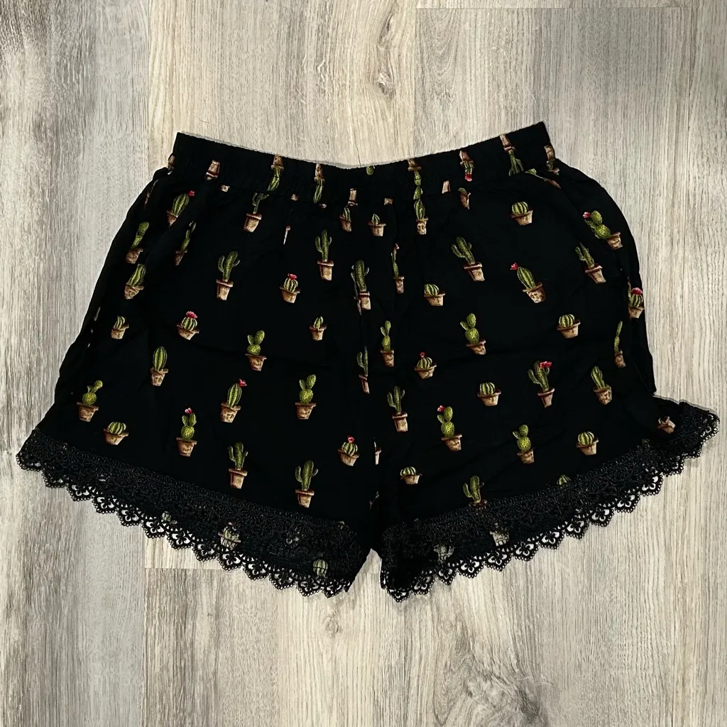 Allegra K Black Cactus Elastic Waist High Rise Lounge Shorts Lace Trim Size S - $24 - From Alyssa