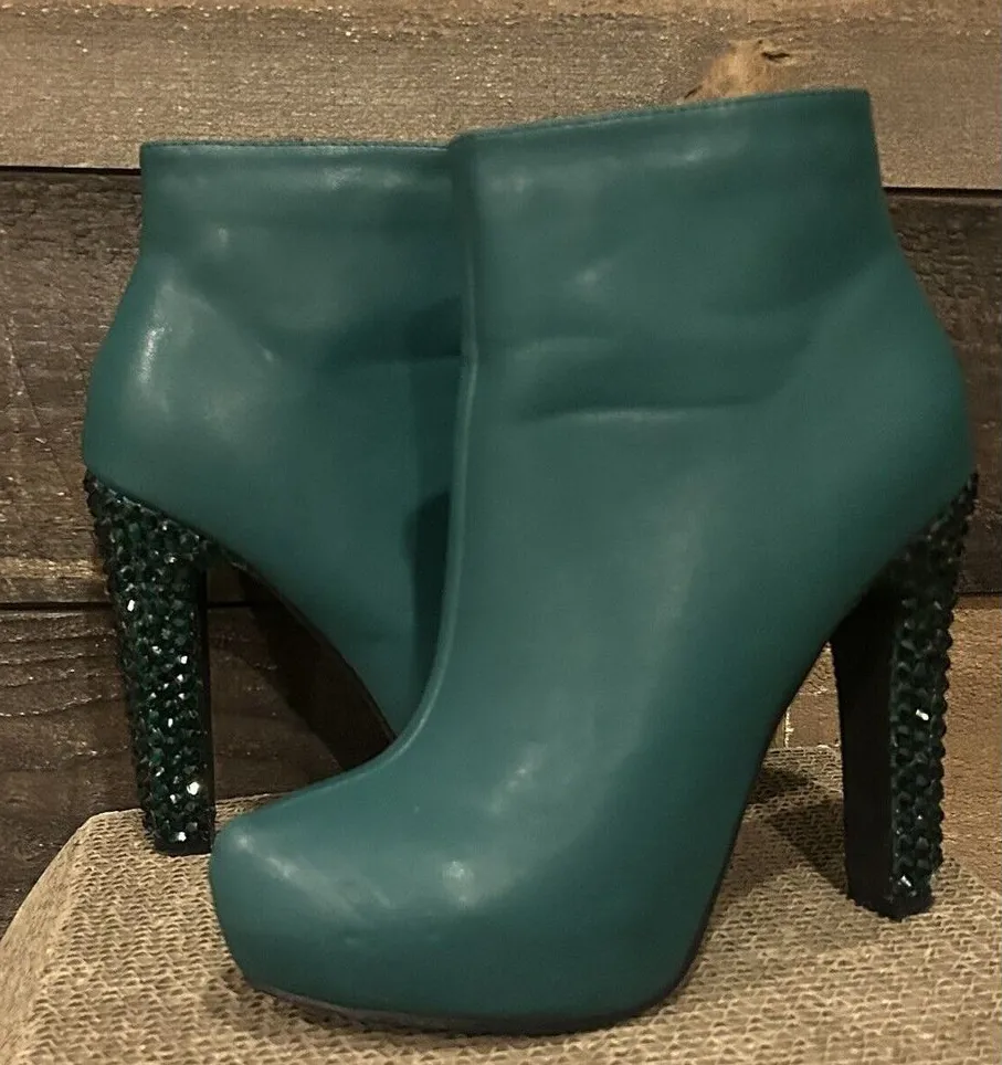 Allegra K Green Faux Suede Round‎ Toe Jeweled Heel Ankle Boots SOLD Size 7 - $27 - From Kelly