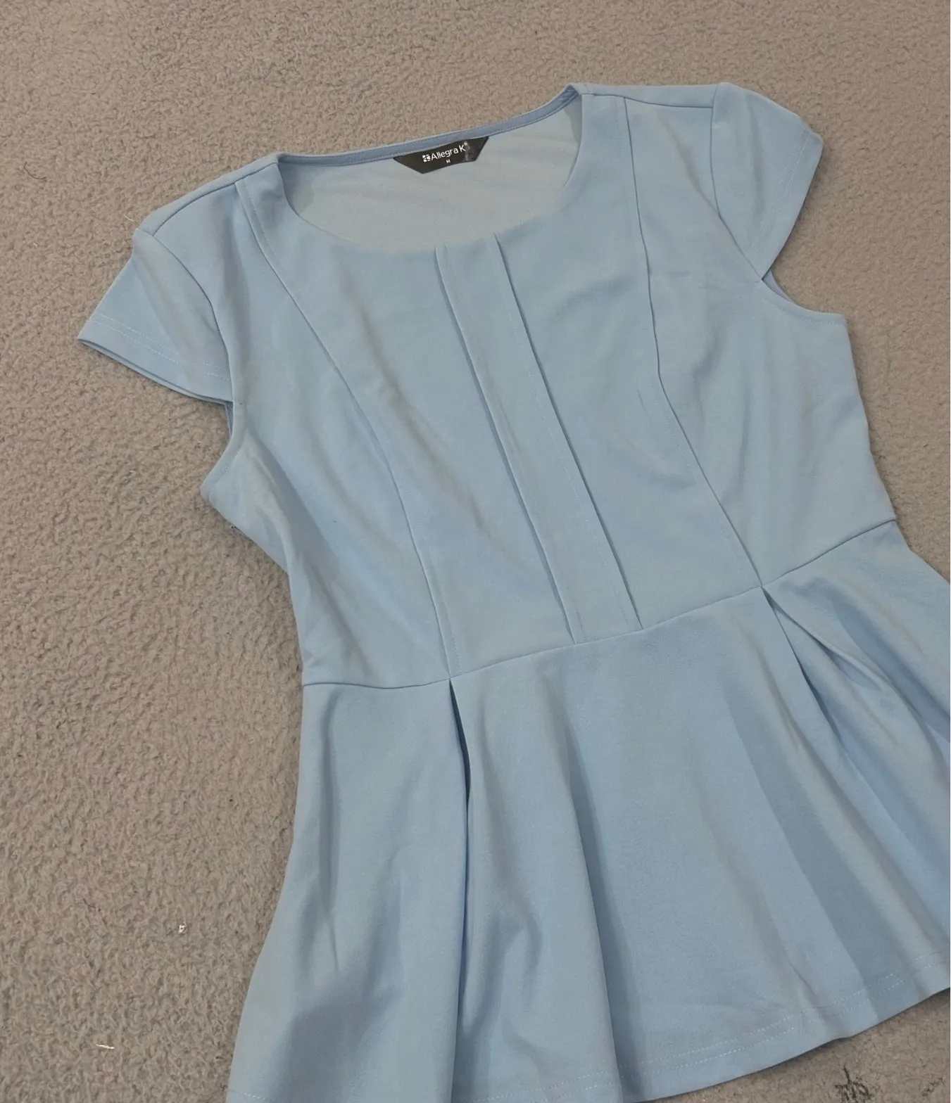 Color: Blue Type: Blouse Department: Women Material: Polyester, Spandex Neckline: Round Neck Sleeve Length: Short Sleeve Sleeve Type: Cap Sleeve Accents: Pleated, Zipper Pattern: Solid Features: Peplum, Side Zip Closure, Business Casual, Office Wear, Lightweight Fit: Regular **First few pictures intentionally darker to better show the color of the top. Condition: New w/o Tags Keywords: Allegra K, Womens Blouse, Peplum Top, Blue Blouse, Cap Sleeve Top, Pleated Blouse, Business Casual, Office Wear, Party Top, Feminine Top, Size M, Polyester Spandex, Summer Top, Spring Top, Elegant Blouse **Fast Shipping / Smoke Free Home**