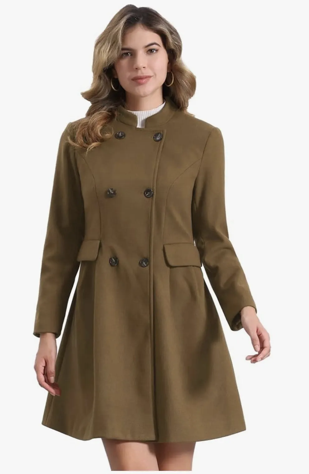 The Allegra K Stand Collar Coat is a stylish and versatile outerwear option for women. Featuring a double-breasted design with a button closure, this long-sleeve coat is perfect for workwear during the winter season. The coat is made of polyester and lined with polyester insulation, making it warm and comfortable. With a classic pea coat style and a collar reminiscent of a Peter Pan collar, this coat adds a touch of sophistication to any outfit. Available in a size small in a sophisticated brown color, this coat is a must-have addition to any woman's wardrobe.