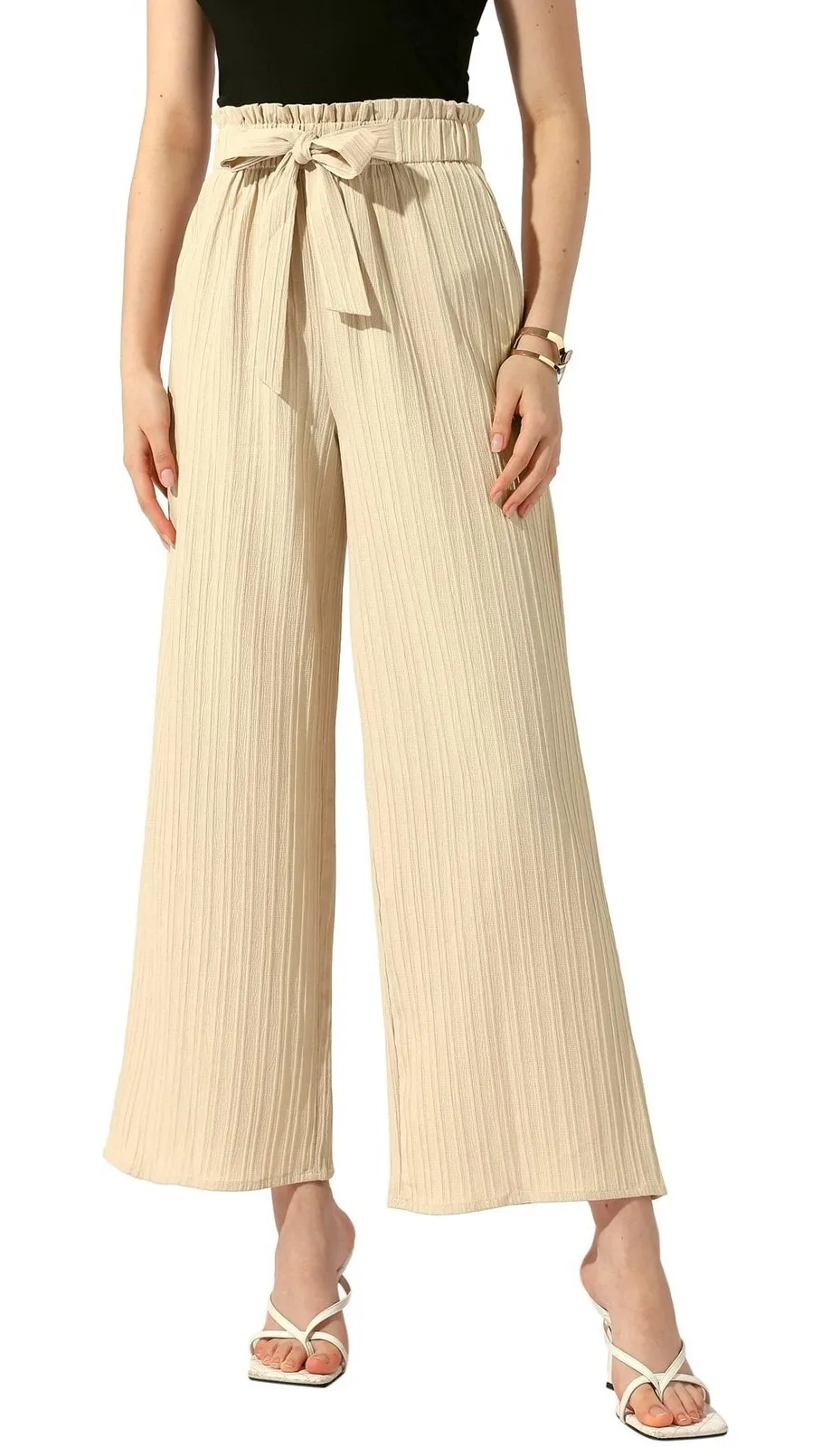 NWT Allegra K Women's Pockets Tie Knot Pleated High Waist Textured Palazzo Trousers Wide Leg Paperba... Show more