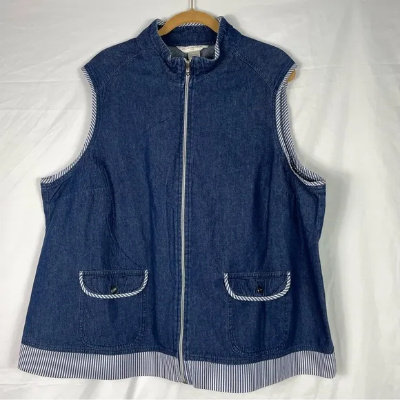 Allison Daley II Denim Jean Full Zip Vest With Striped Trim Women’s Sz 22W - $18 - From Second