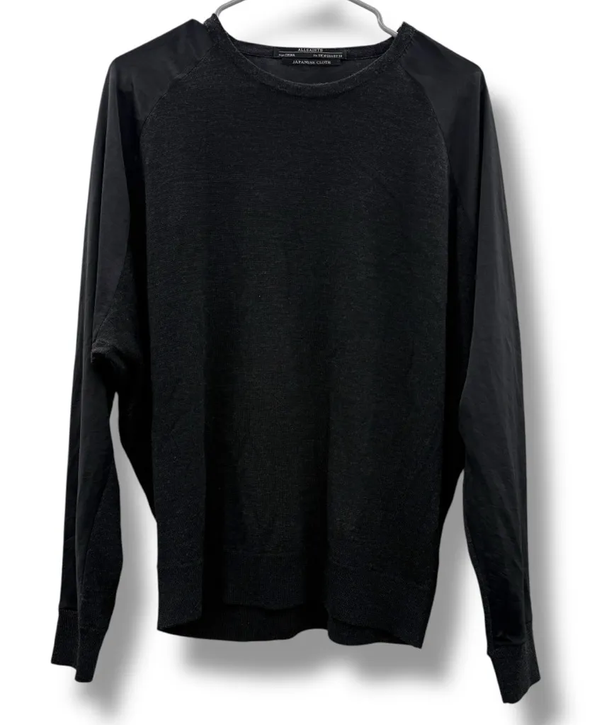 All Saints Black Mixed Media Merino Wool Long Sleeve Top Crafted from soft, high-quality merino woo... Show more