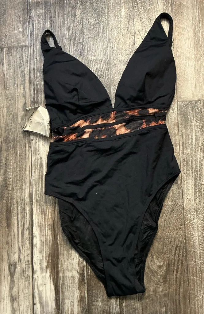 Dive into style with this elegant black and orange women's swimsuit. Perfect for a day at the beach or poolside lounging. It’s hard to tell in the pictures but the animal print is a sheer material. If you have an issues or concerns with your purchase please reach out and let me know. I’ll do whatever I can to make it right. Customer satisfaction is at the forefront of my small business and I want you to love your purchase. By purchasing you are supporting a small business and buying second hand is a great way to reduce waste and take care of our environment. All items are washed and put into cellophane bags to ensure cleanliness. Please reach out with any questions!