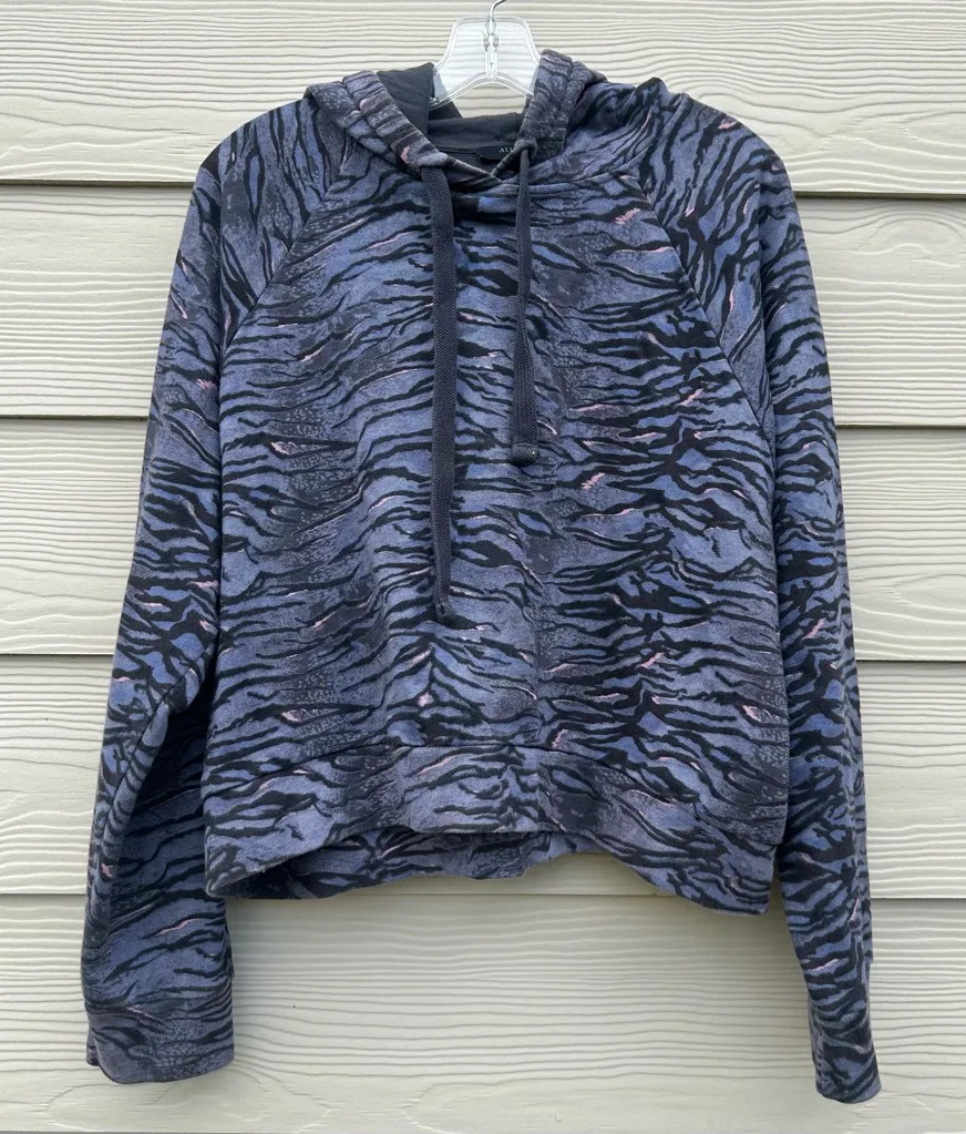AllSaints Tygers Ragland Hoody Blue Animal Print Women Sz Medium Cropped Hoodie - $43 - From Gigi